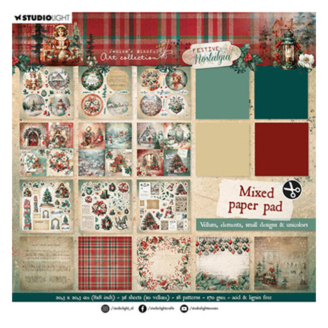 Studio Light JMA Mixed Paper Pad Vellum, Unicolor & elements Festive Nostalgia nr.254