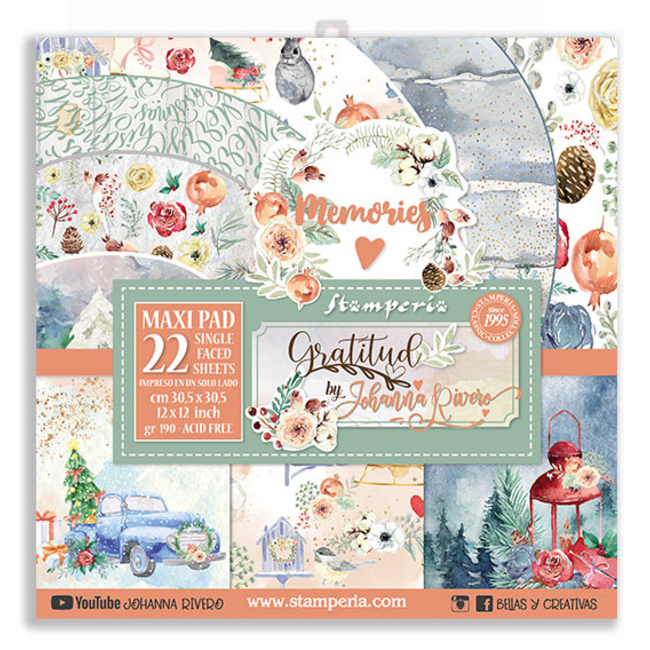 Stamperia Block 10 sheets 20.3x20.3 (8”x8”) Double Face Gratitud