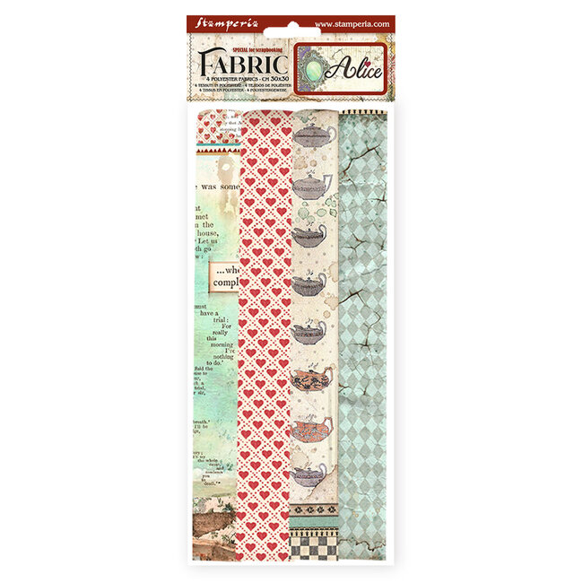 Stamperia Pack 4 sheets fabric cm 30x30 - Alice Forever