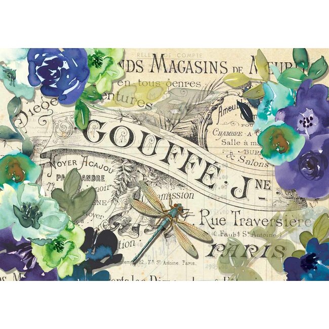 Decoupage Queen Watercolor Blue Flowers and Dragonfly A3Watercolor Blue Flowers and Dragonfly A3