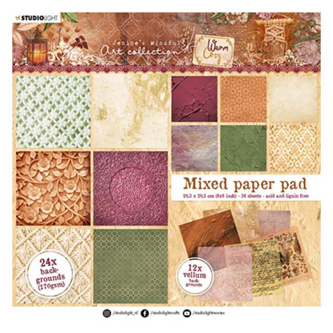 Studio Light JMA Mixed Paper Pad Backgrounds - 24x paper, 12x vellum Warm & Cozy 203x203mm nr.09