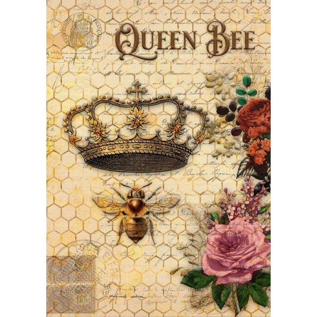 Decoupage Queen Queen Bee and Roses with Honeycomb Rice Paper A4