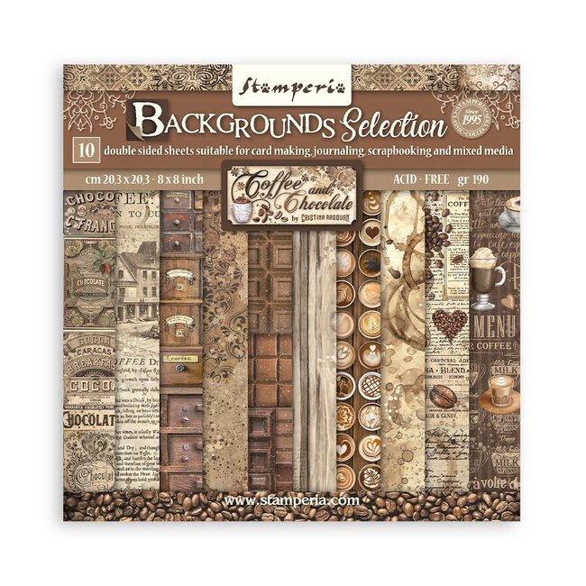 Stamperia Papierblok 20,3x20,3 cm - 10 vellen -  Backgrounds Selection - Coffee and Chocolate