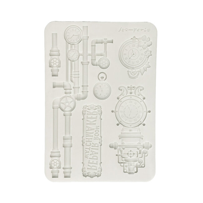 Stamperia Silicon mould Designs A5 for Art and Craft - Gardens of Time clocks and tubes