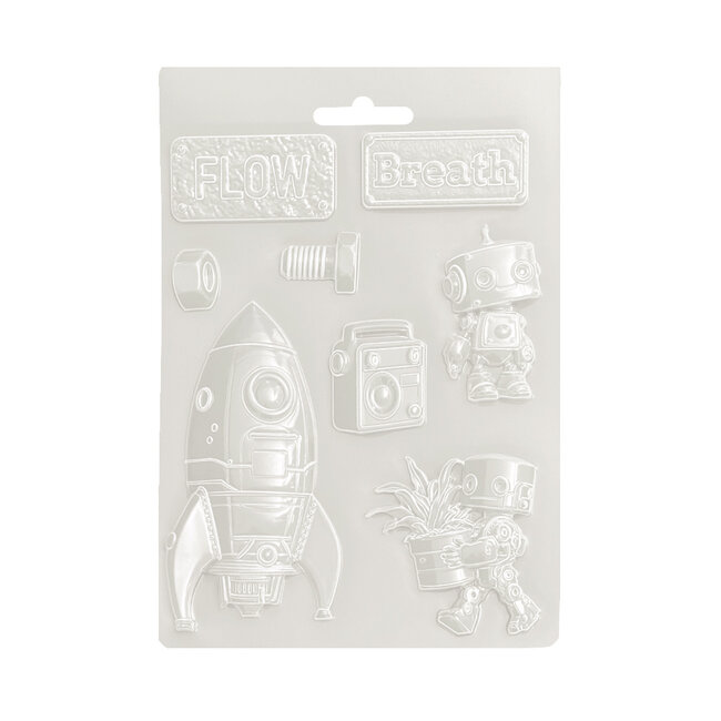Beoordeel Stamperia Soft Mould A5 - A new Beginning spaceship and robot